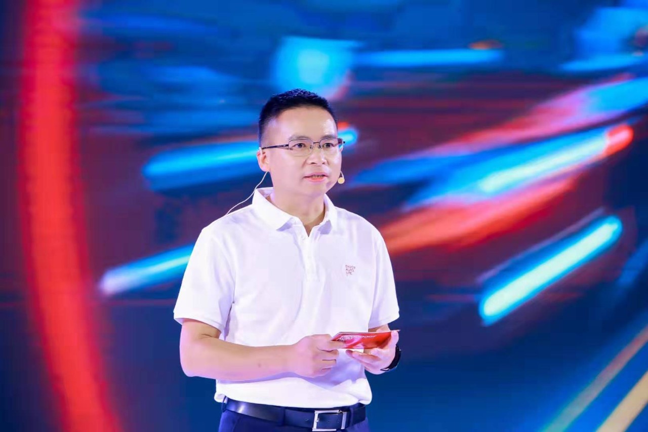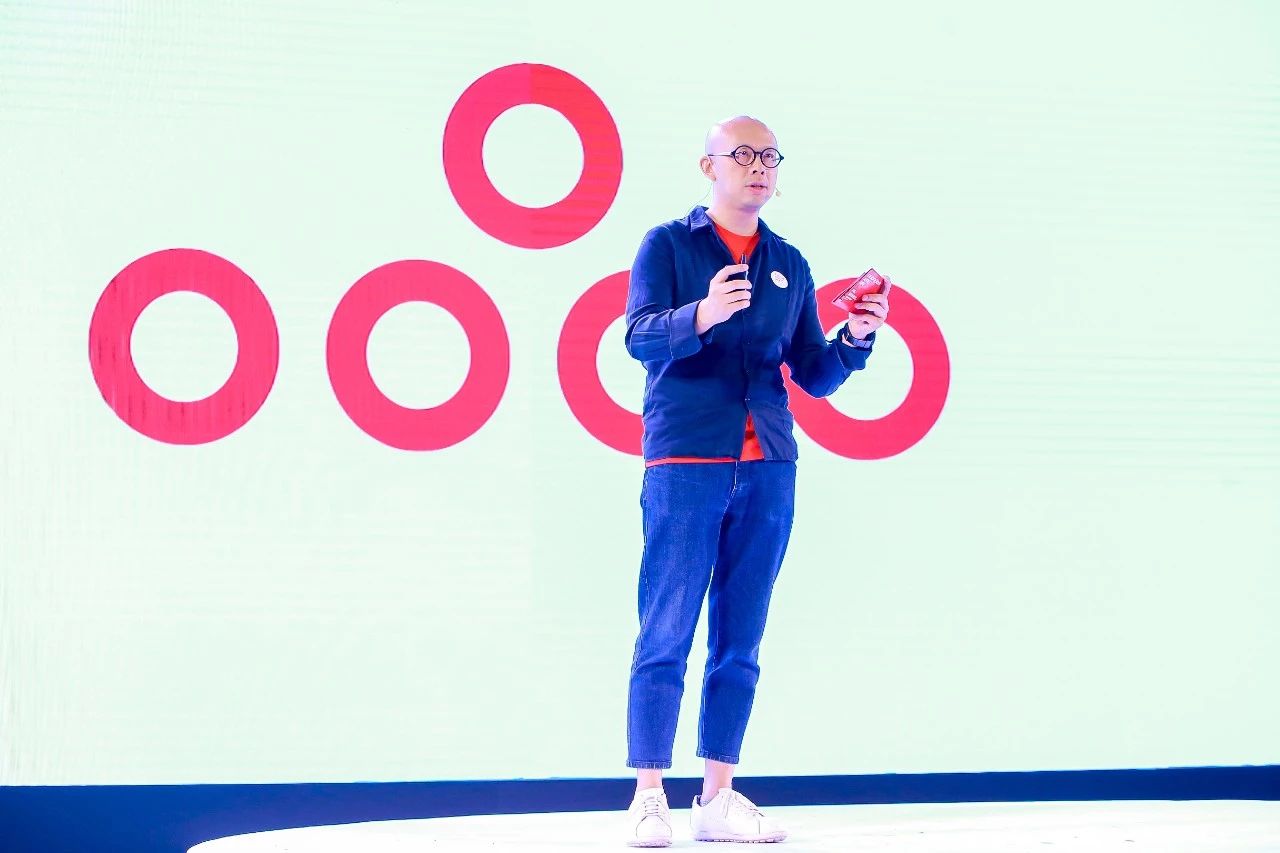 設計師黃揚現場解讀盈眾全新品牌形象。他表示,新Logo對原有品牌形象進行了傳承與創新,五個紅色圓環通過極簡手法重新排列,形成更具創新感和未來感的圖形符號,象征著盈眾一直追求的和諧人車關系。
