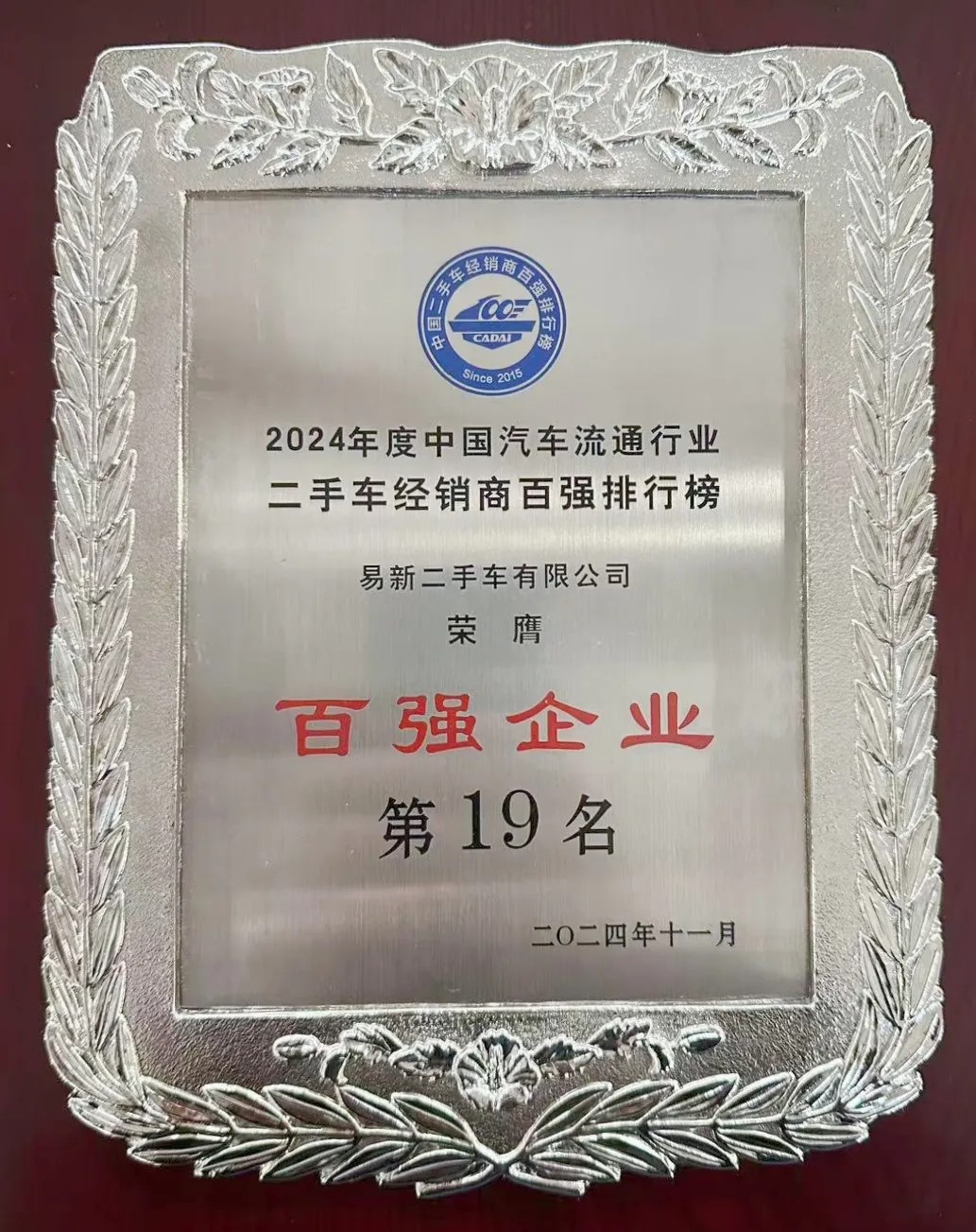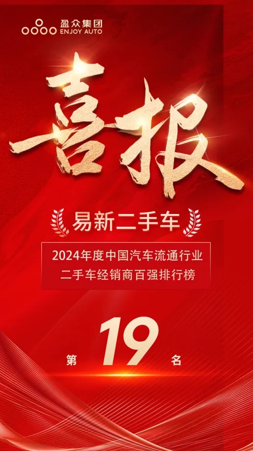 11月6-8日,2024中國汽車流通行業年會暨博覽會在蘇州舉行。在“渡困境 謀變局 啟新篇”主題引領下,此次會議集結業界精英、權威專家與領軍企業,旨在深入剖析當前市場環境下的機遇與挑戰,共謀未來發展新策略。 會上還公布了2024年度中國汽車流通行業二手車經銷商百強排行榜,盈眾旗下易新二手車再次上榜,榮膺百強企業第19名。